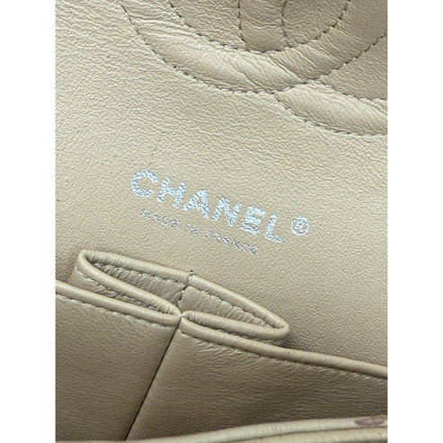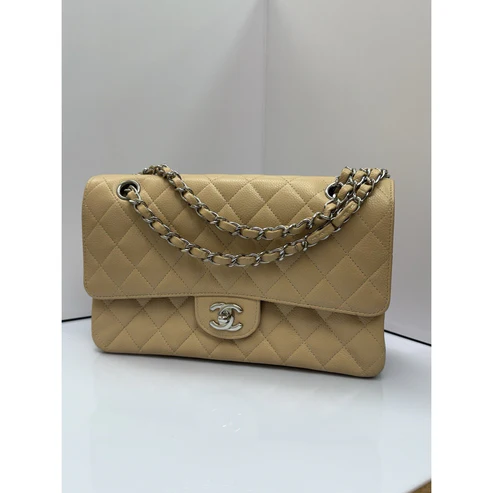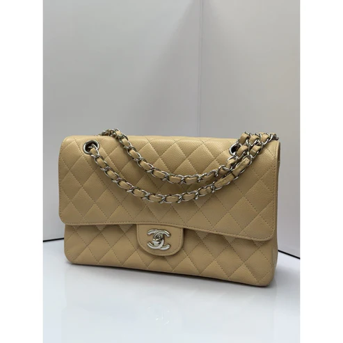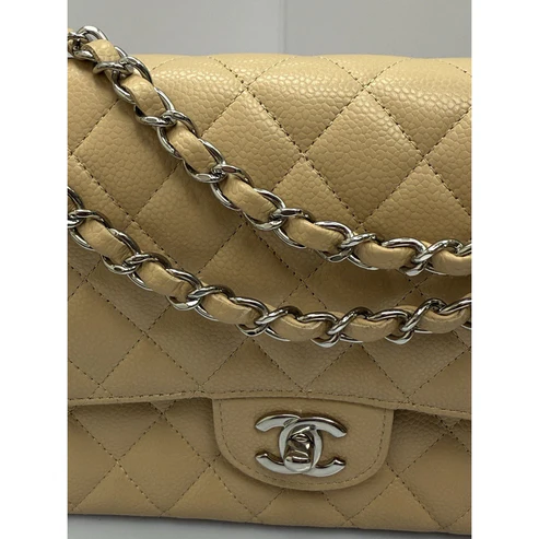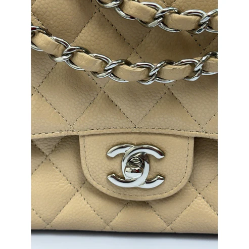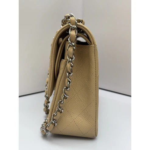 • Strap: Leather-interwoven chain, worn doubled or single crossbody
