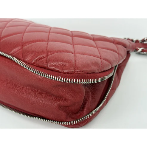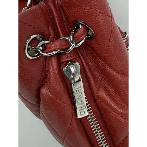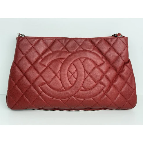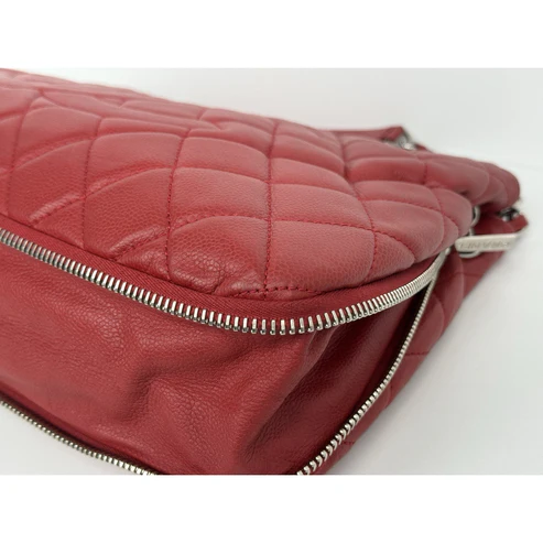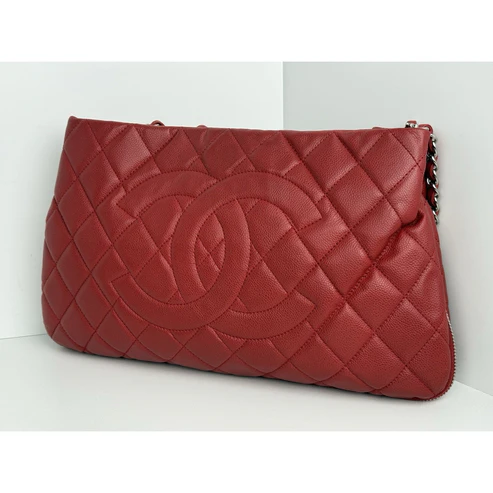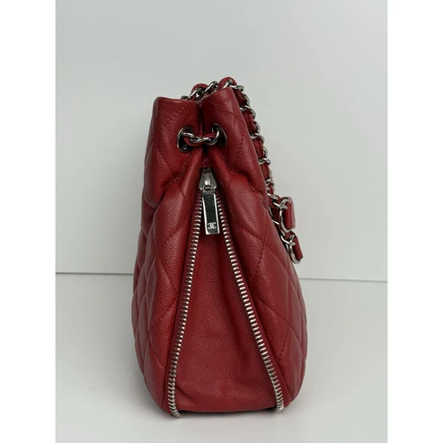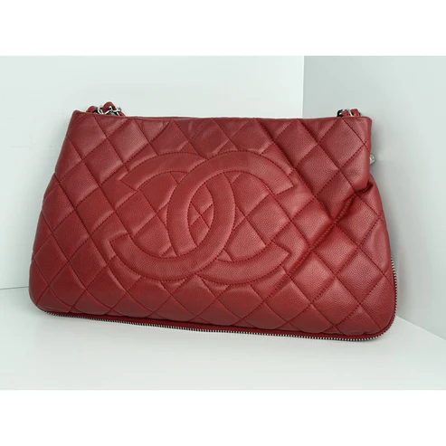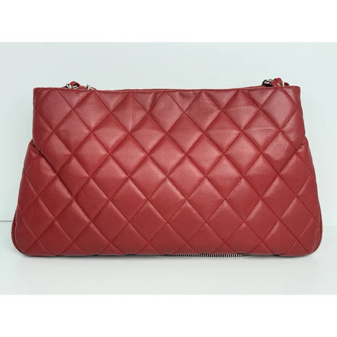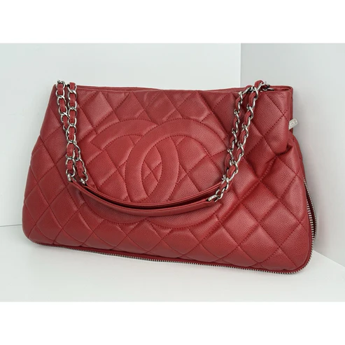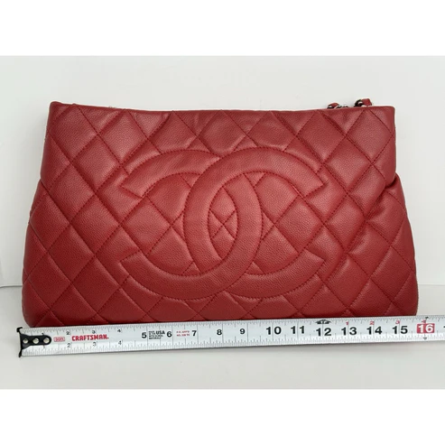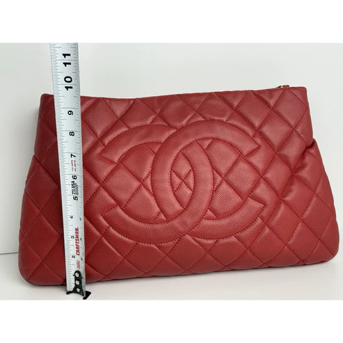 This Chanel tote is crafted in durable red caviar leather, accented with gold-tone hardware and the house’s signature interlocking CC logo. Designed with dual leather handles, a structured silhouette, and a magnetic snap closure, it balances elegance with practicality. The interior is lined in smooth red leather and features ample room for essentials, making it both chic and functional.